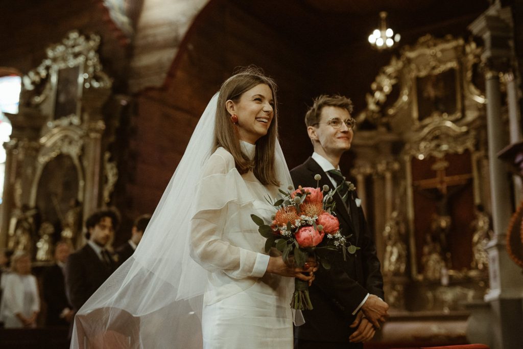 bride: dress was made by Ola’s aunt Joanna Grala in Linia Autorska Pracownia Krawiecka, blouse Lola Varma